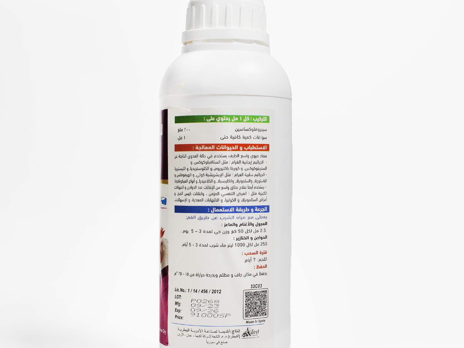 Ciprofloxacin Oral Solution is a fast-acting antibiotic drug used to treat infections in dogs, cats, poultry, and livestock like cows, goats, sheep, and pigs. It is commonly used to treat infections of the urinary tract, skin, or respiratory system. Ciprofloxacin is effective for gram-negative and gram-positive bacteria.