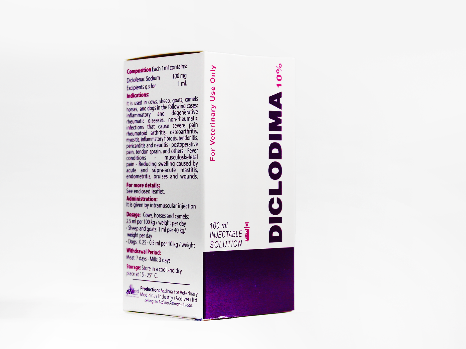 It is used in cows, sheep, goats, camels, horses and dogs in the following cases: inflammatory and degenerative rheumatic diseases, and non-rheumatic inflammations that cause severe pain - rheumatoid arthritis, osteoarthritis, myositis, inflammatory fibrosis, tendonitis, sheath and nerve inflammation - cases of pain after surgical operations, tendon sprains and others - cases of fever - musculoskeletal pain - Reducing swelling resulting from acute and supra-acute mastitis, uterine inflammation, bruises and wounds