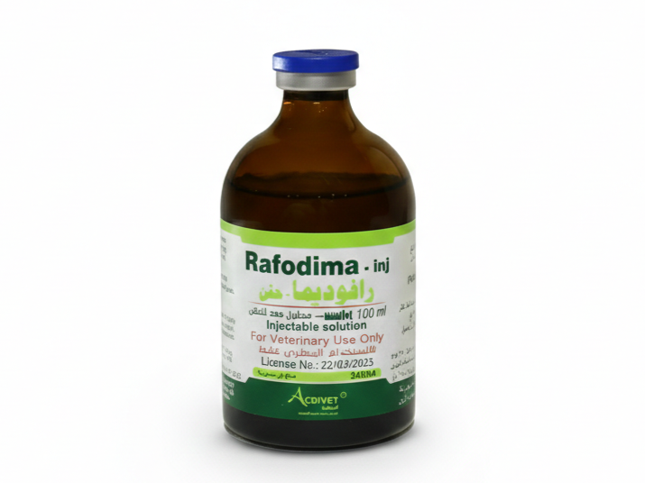 Pharmacokinetic studies in cattle have shown that rafoxanide is absorbed into the bloodstream, reaching an average peak concentration of approximately 23 µg/mL within 2–3 days post-administration. Plasma concentrations are significantly higher than tissue levels. Only one metabolite, 3,5-diiodosalicylic acid, has been identified and detected in blood and milk. Limited information is available regarding excretion; however, rafoxanide appears to be excreted primarily via bile.